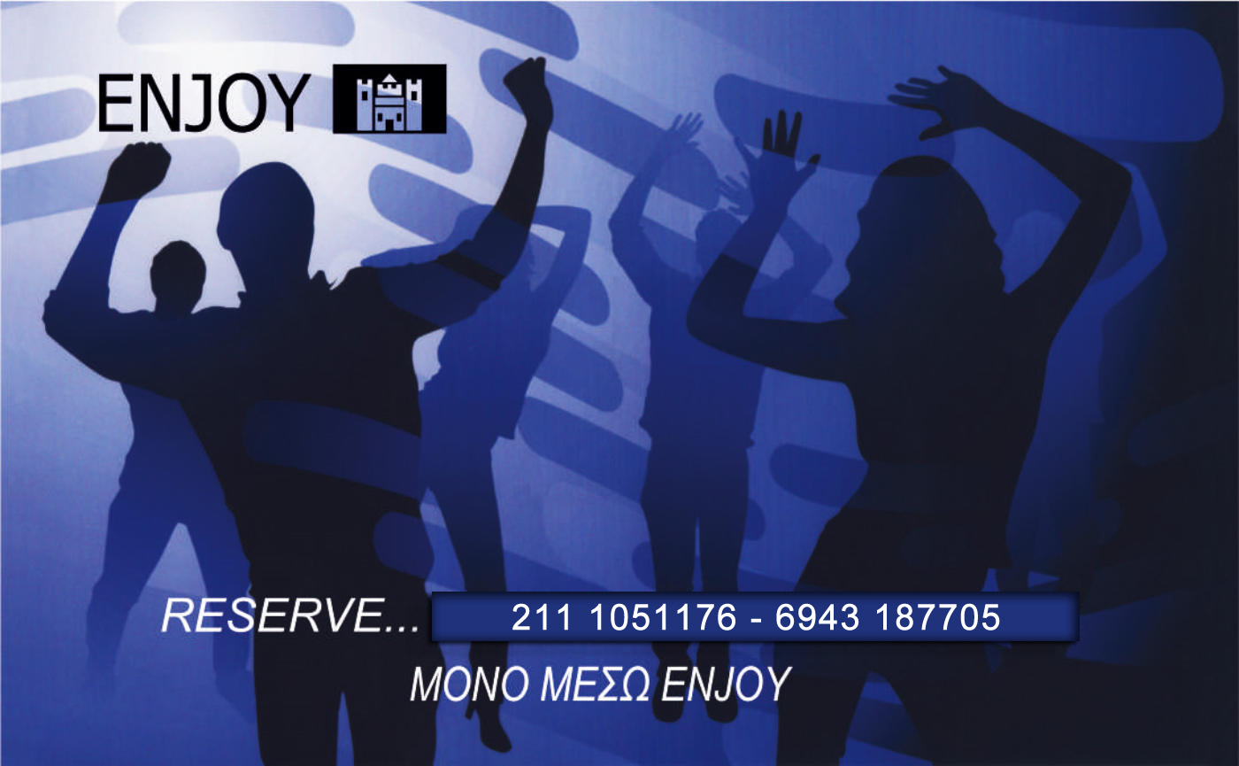 - Η ENJOY s.a protection economique συνεργάζεται με τα μεγαλύτερα κοσμικά κέντρα Αθήνας, Θεσσαλονίκης, Πάτρας.