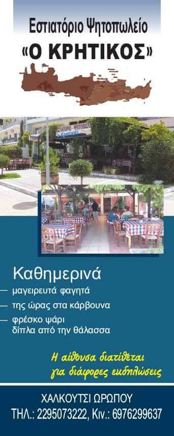 View Larger Image Ταβέρνα “Ο Κρητικός”dimitris2022-04-28T11:03:22+03:00 Project Description Στοιχεία επικοινωνίας: Ποσειδώνος 3 & Καραϊσκάκη 1, Χαλκούτσι Ωρωπού / GPS: 38.331823, 23.735409 Τηλ: 2295073222 Project Details Categories: Χαλκούτσι ΕπιχειρήσειςΕστιατόρια Project URL: facebook Copyright: 6% Share this business, Choose Your Platform! FacebookTwitterRedditLinkedInTumblrPinterestVkEmail Related Projects Ψαροταβέρνα ”Το Κύμα” Gallery Ψαροταβέρνα ”Το Κύμα” March 20th, 2017