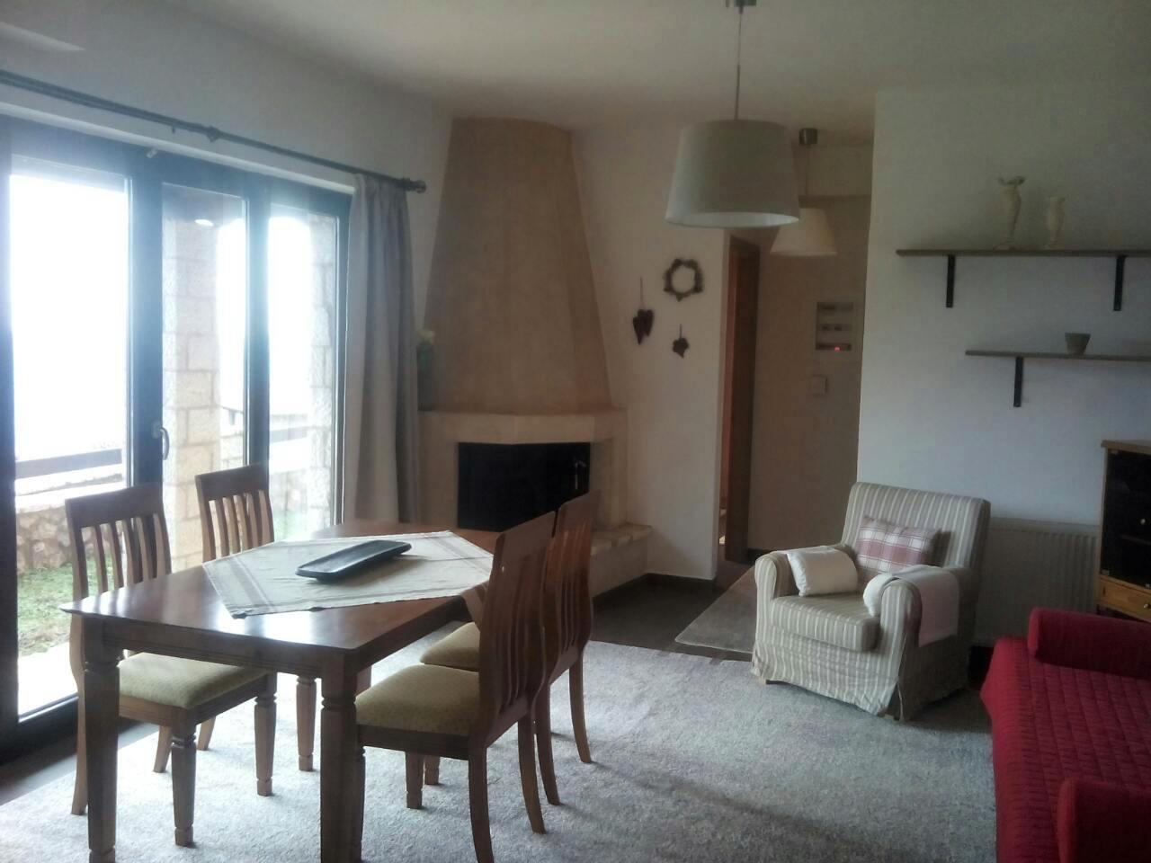 Το ακίνητο είναι επιπλωμένο, 45 τ.μ. κατασκευασμένο με ξύλα και πέτρα, διαθέτει τζάκι, πανοραμικά παράθυρα και μπαλκόνια, αυτόνομη θέρμανση, ατομικό κήπο, παρκινγκ, καθώς και μαγευτική θεά, πολύ κοντά στην πόλη και στην αγορά για περίπατο, εξαιρετικής κατασκευής 2016 !!