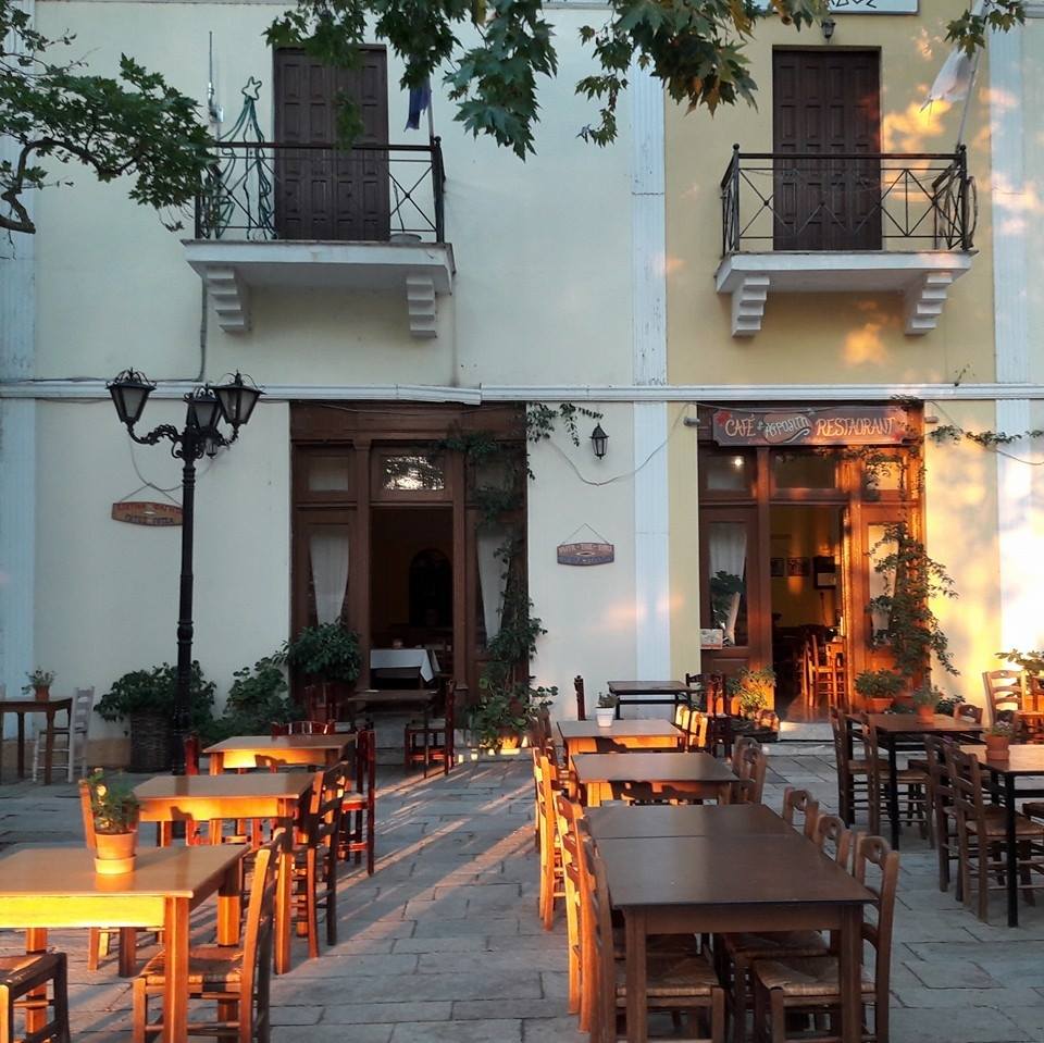 Αphrodite Cafe Restaurant operates from 2014 under the direction of Ms. Aphrodite Lampadari, serving daily, throughout the year, cooked with raw ingredients, grilled meat, pies, coffee and pastries (spoon sweets, and pastries).