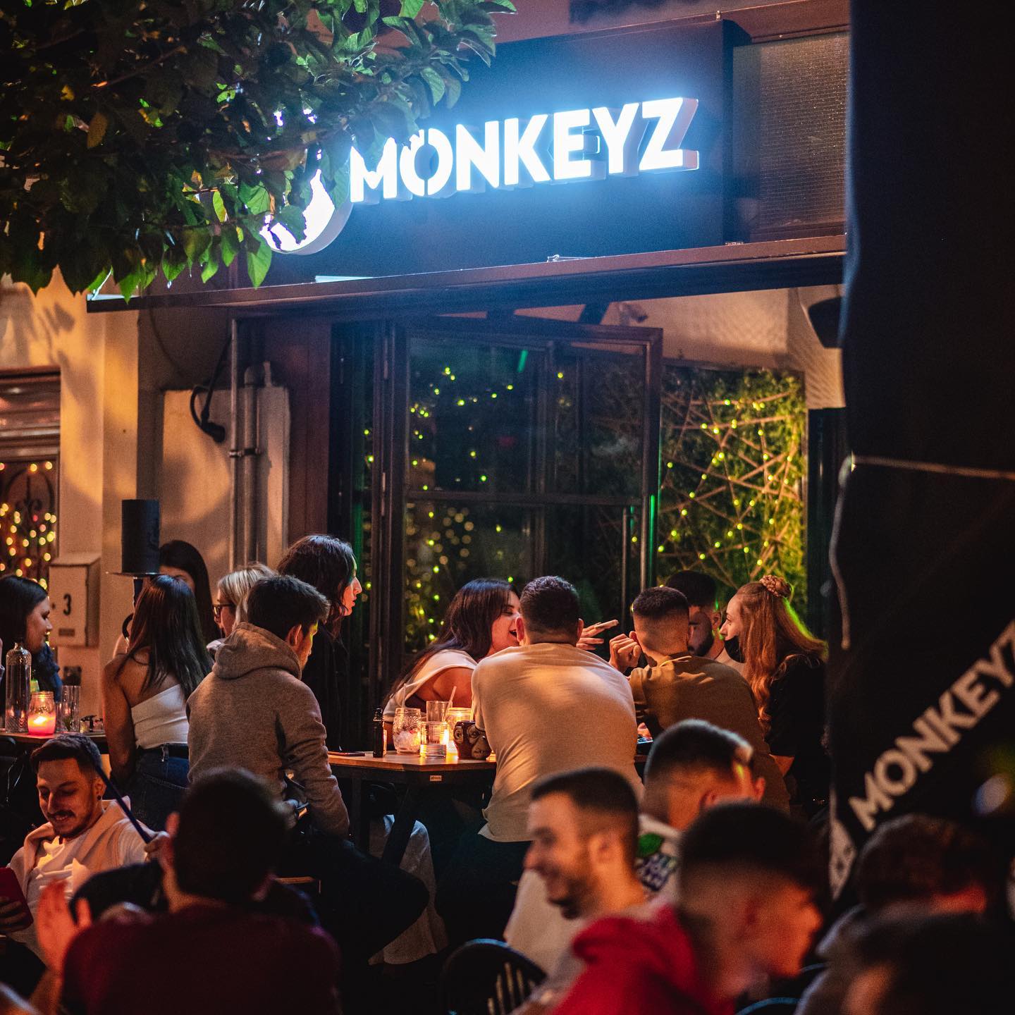 Εδώ στο Monkeys, απολαμβάνουμε καλό φαγητό, ιδιαίτερα γλυκά και πρωτότυπα κοκτέιλ! Brunch, σνακ και καφέδες! Είμαστε λάτρεις της σοκολάτας και λατρεύουμε να κάνουμε πάρτι το βράδυ!
