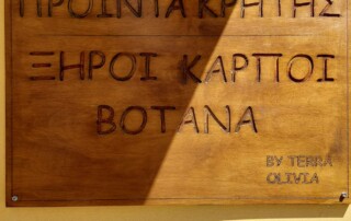 To κατάστημα Terra Olivia στεγάζεται στη Δημοτική Αγορά Χανίων, στο νούμερο 19/55, υπό την διαχείριση του Παναγιώτη Κλειδαρά. Στο κατάστημά μας θα βρείτε μια ποικιλία από ποιοτικά Ελληνικά ελαιόλαδα, ξηρούς καρπούς, γλυκά του κουταλιού, μαρμελάδες, μπαχαρικά και πολλά άλλα προϊόντα που βασίζονται στη μάνα γη. Επίσης, υπάρχει μια μεγάλη γκάμα σαπουνιών και καλλυντικών με βάση την Ελιά και την Αλόη.